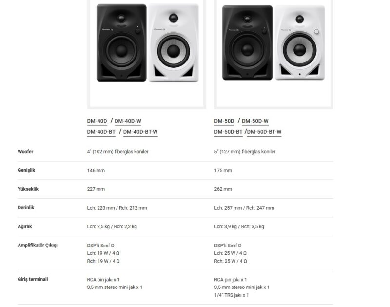 DM serisi hoparlörler, dengeli ve vurucu bir bas sesi sunar ve her ünitedeki yeni D Sınıfı amplifikatör ve güçlü woofer sayesinde ekstra güç üretebilirler. DJ modundan Prodüksiyon moduna geçmek için arkasındaki düğmeyi çevirmeniz yeterlidir ; DSP ayarları her uygulama için en iyi sesi otomatik olarak oluşturacaktır. DM serisi tüm monitörler Pair yani çift olarak gelmektedir. RCA, mini jak ve yeni eklenen TRS giriş terminalleriyle, DJ kontrol cihazları ve mikserler gibi farklı ekipmanları veya kullandığınız dizüstü bilgisayarı veya ses kartını bağlayabilirsiniz. Kulaklığınızı bağlamak ön paneldeki soket aracılığıyla kolaydır ve seviye düğmesi de hemen önünüzdedir.